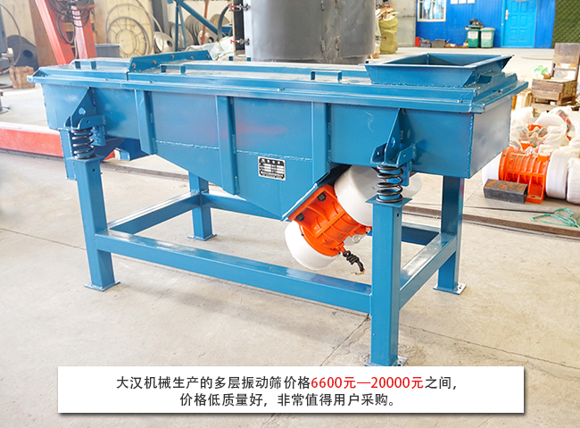 隨著生產(chǎn)節(jié)奏的加快,單層直線振動篩已經(jīng)完全無法滿足生產(chǎn)需求,多層直線振動篩就是由直線振動篩改造升級的一款高效篩分設(shè)備。多層直線振動篩可以將物料分級為多種規(guī)格,實(shí)現(xiàn)一次投料出多種規(guī)格物料,可以有效節(jié)省時(shí)間成本。由于不同廠家生產(chǎn)的多層直線振動篩型號、生產(chǎn)工藝等不同,所以就導(dǎo)致市場上多層直線振動篩價(jià)格不一,那么一臺多層直線振動篩一般都多少錢呢?大漢小編將為您解答:
