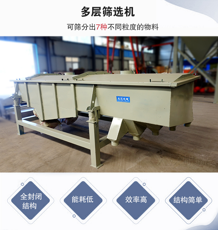 具有能耗低、效率高、結構簡單、易維修、全封閉結構無粉塵溢散的特點。最高篩分目數(shù) 400目,可篩分出7種不同粒度的物料。